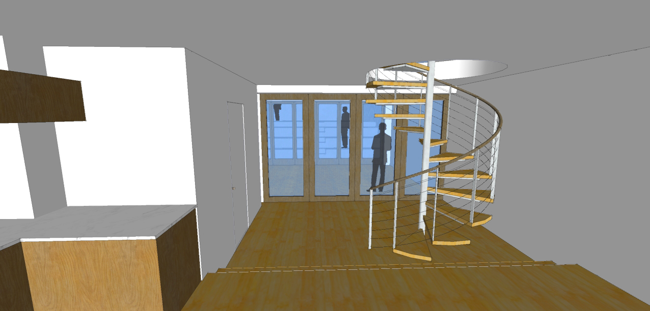 Originally built in 1933 as working-class housing, this townhome has seen Astoria grow into a bustling neighborhood with a high concentration of young professionals. The owner, a prominent set designer, wanted to update the building to match this transformation. A proposed gut renovation involved adding a story for a studio, bringing more light inside with generous glazing on the front and rear facades and skylights on the roof, and opening up the interior. We brought the project through Design Development, including a set of bid drawings, at which point the owner decided to complete the project with reduced scope.