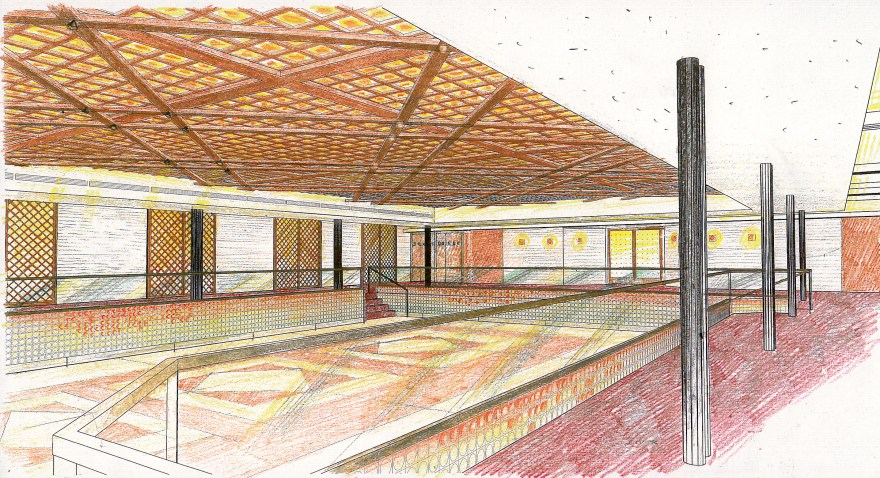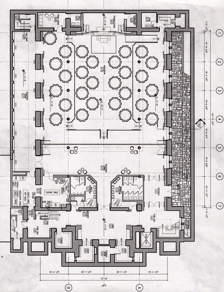 NYC Central Synagogue is located in the heart of Midtown Manhattan at the corner of Lexington Avenue and 55th Street. In 1998, a fire on the roof of the building collapsed and completely devastated the interior of the main space. The basement spaces were badly damaged by flooding. In the process of rehabilitation the technical spaces of the basement were converted into a large banquet room with a stage. In order to help host big events, one of the existing alley ways was covered by a glass roof to form a lounge.