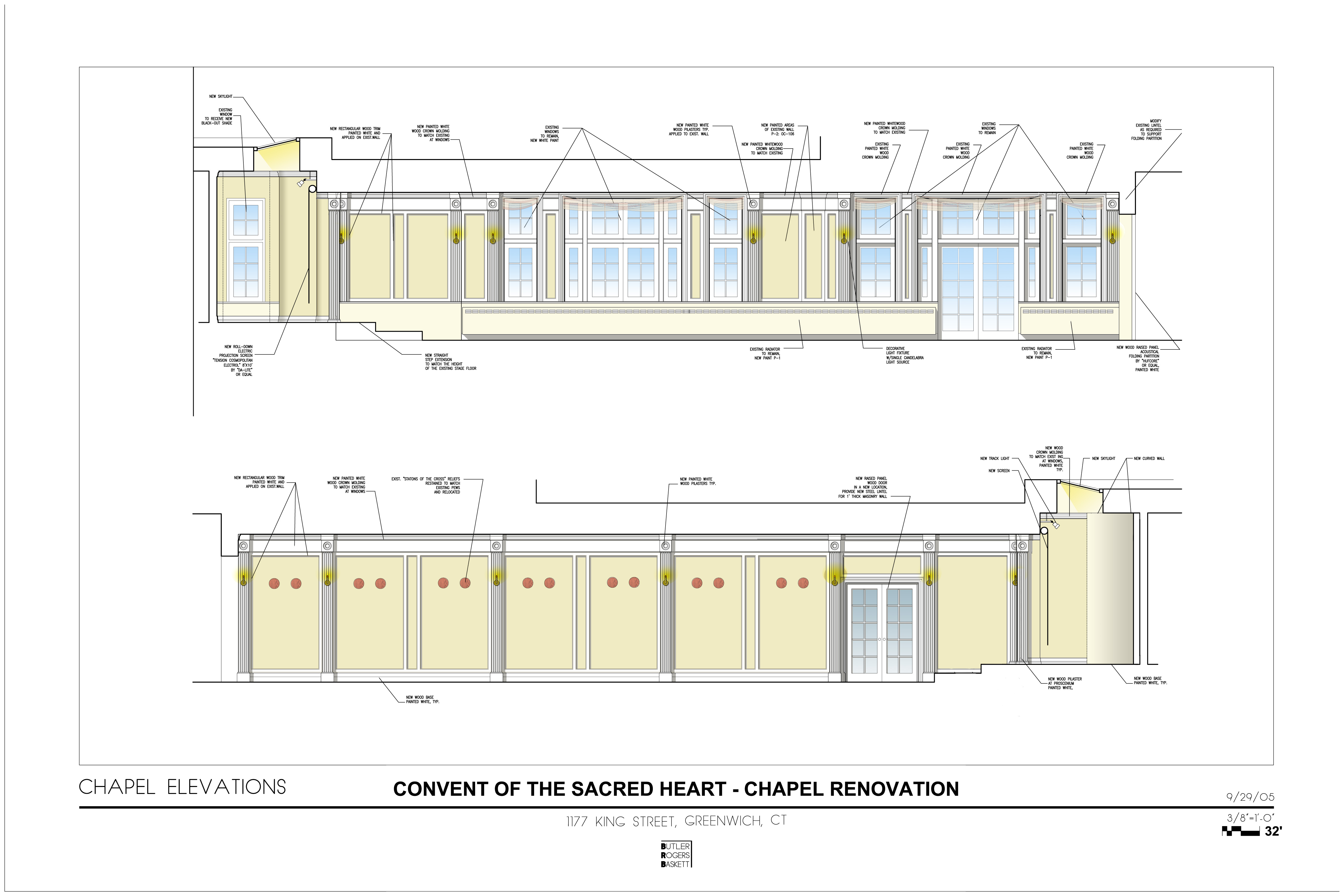 Convent of the Sacred Heart is a private day Catholic girls’ school in Greenwich, CT. The school had a phased renovation/new addition project that lasted for several years and included a new library/academic addition and many areas of renovations of the existing building such as the chapel rehabilitation and converting the existing gym into an auditorium with 300 raked seats.
