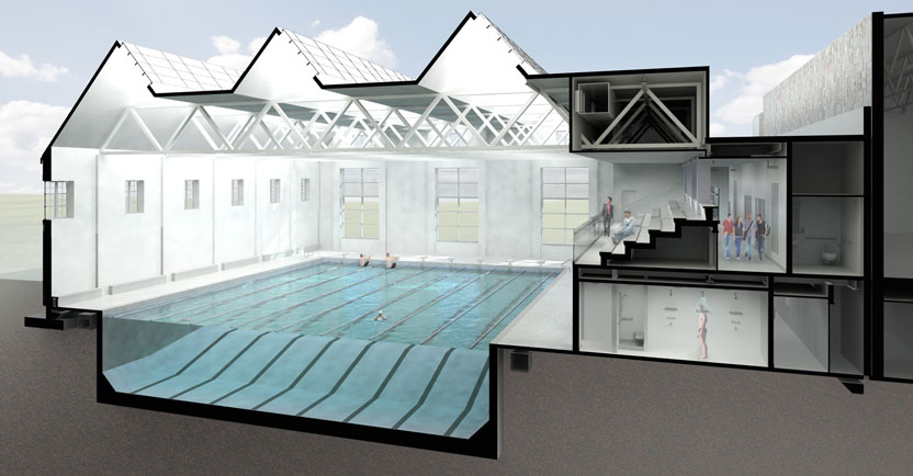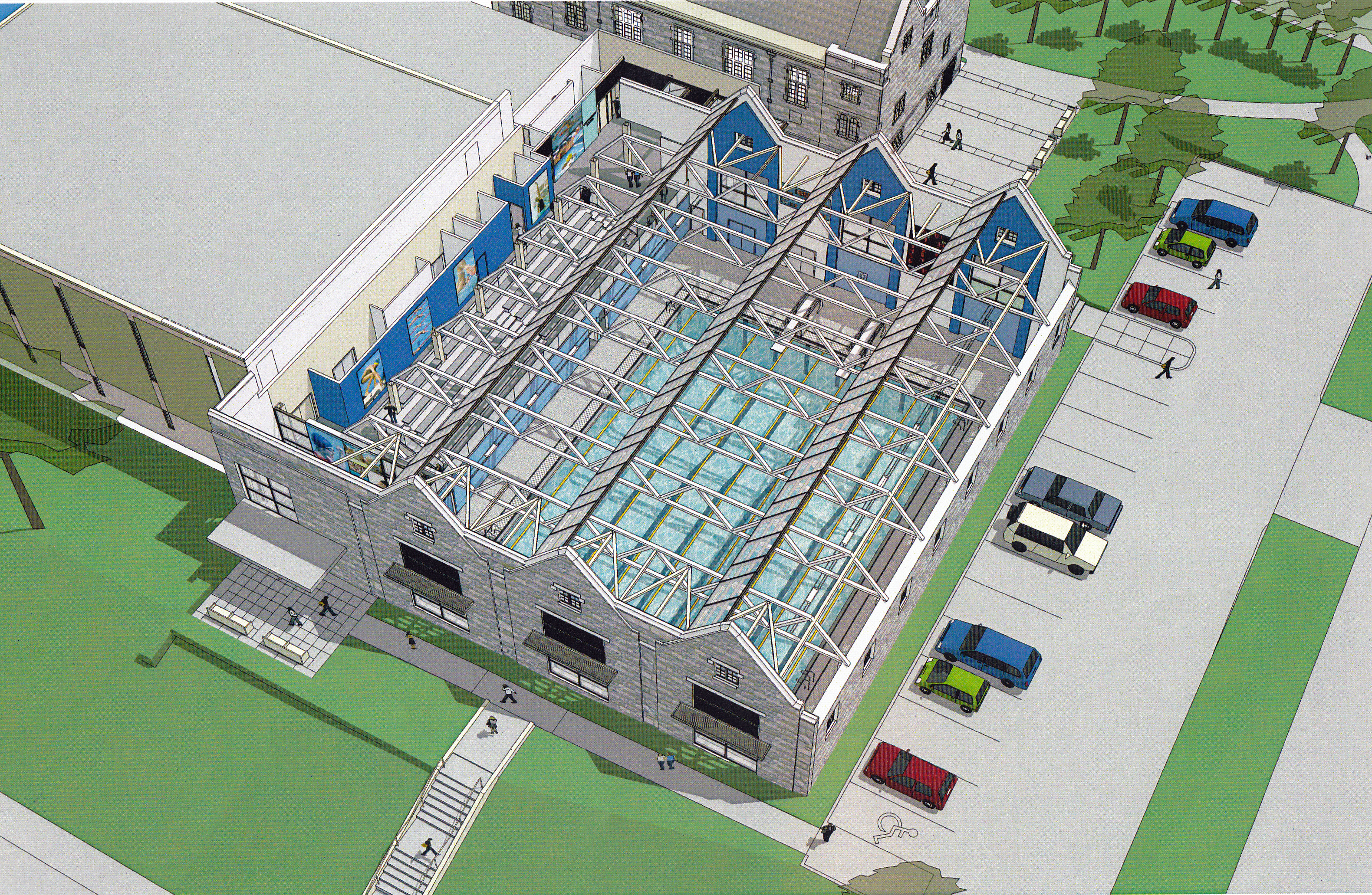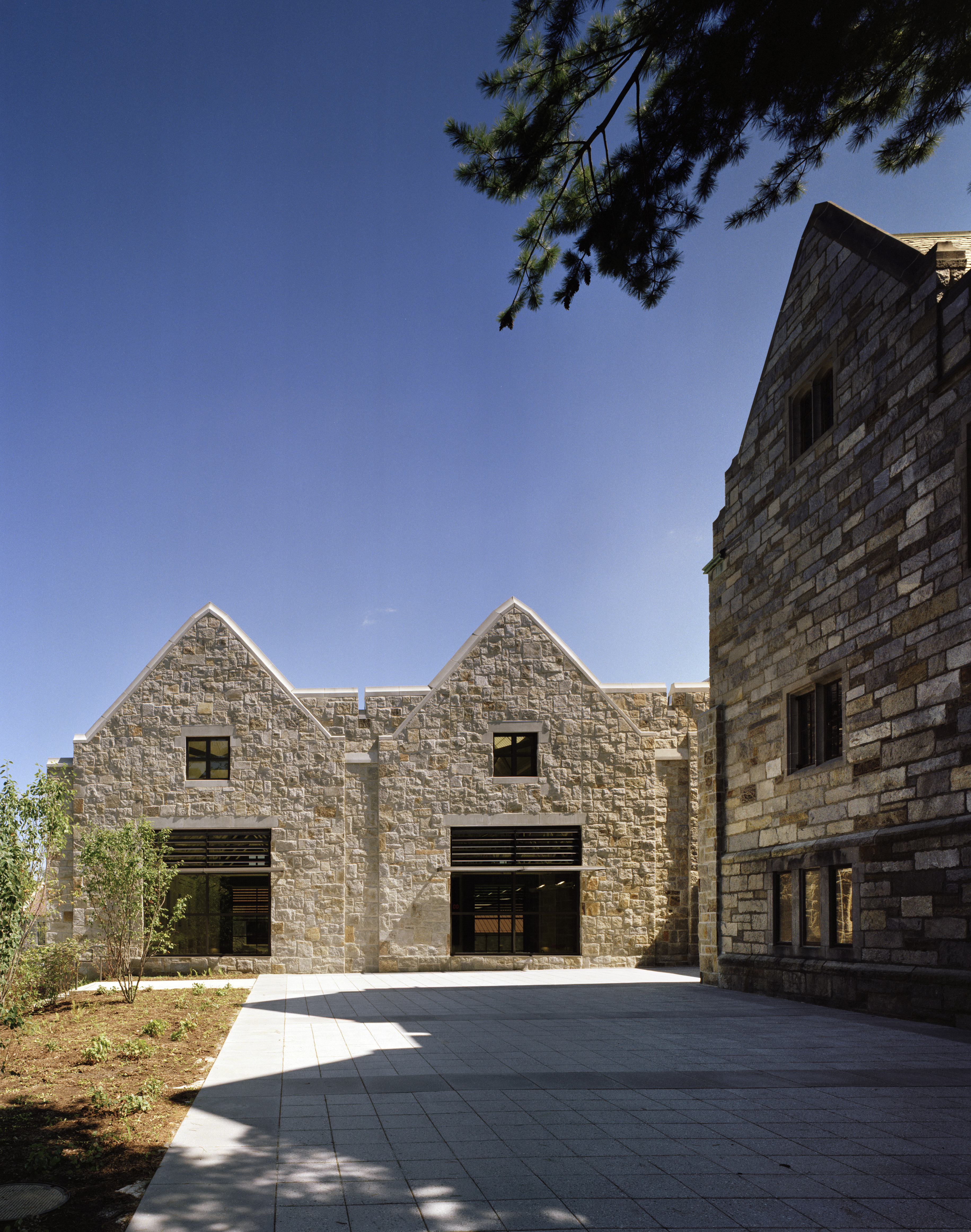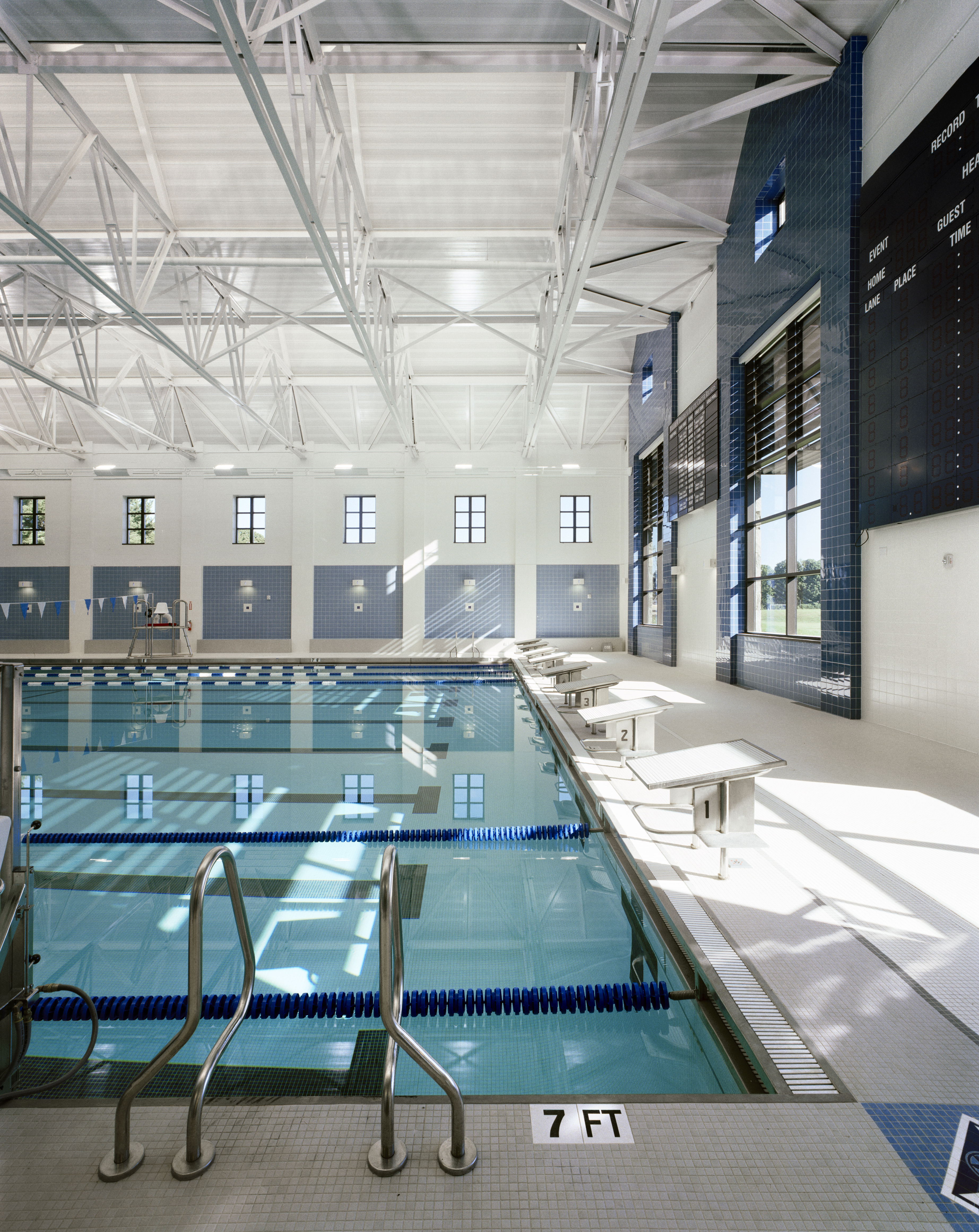 The Canterbury School is a private boarding and day co-ed school in New Milford, CT. The William W. Higgins Aquatic Center is a brand new addition the existing main hall. It is an 8-lane 25-yard competitive swimming and dive pool with a large spectator gallery. The facade is designed to inherit the signature gables of the stone main hall built in the iconic New England Ivy League school style. The roof, a derivative of the gable façade, is also equipped with three continuous Kalwall skylights that allow for dispersed natural light to wash the interior.