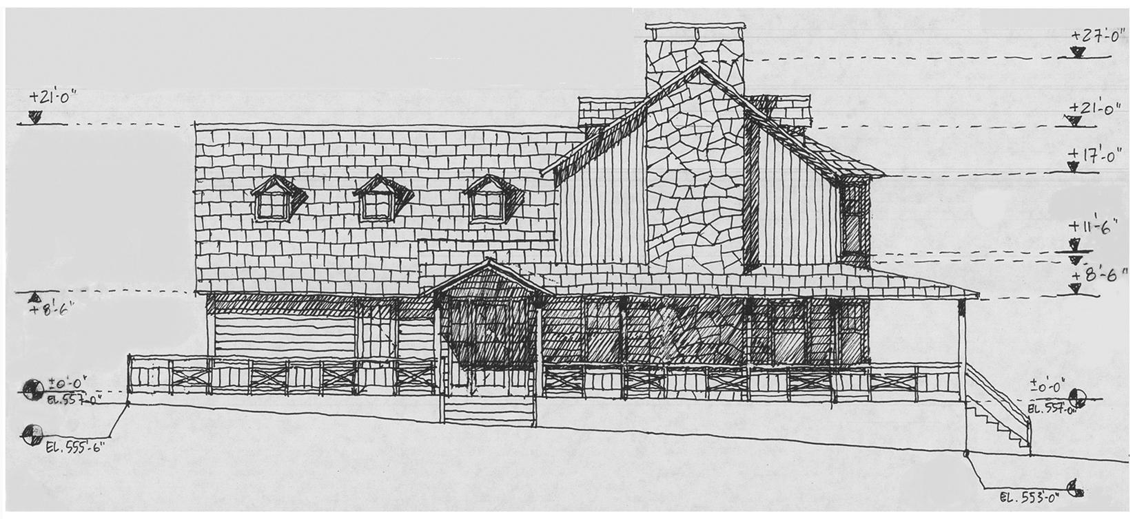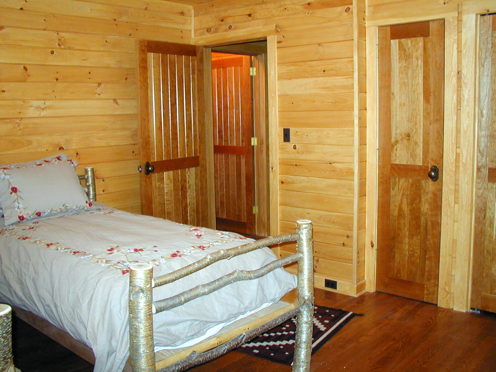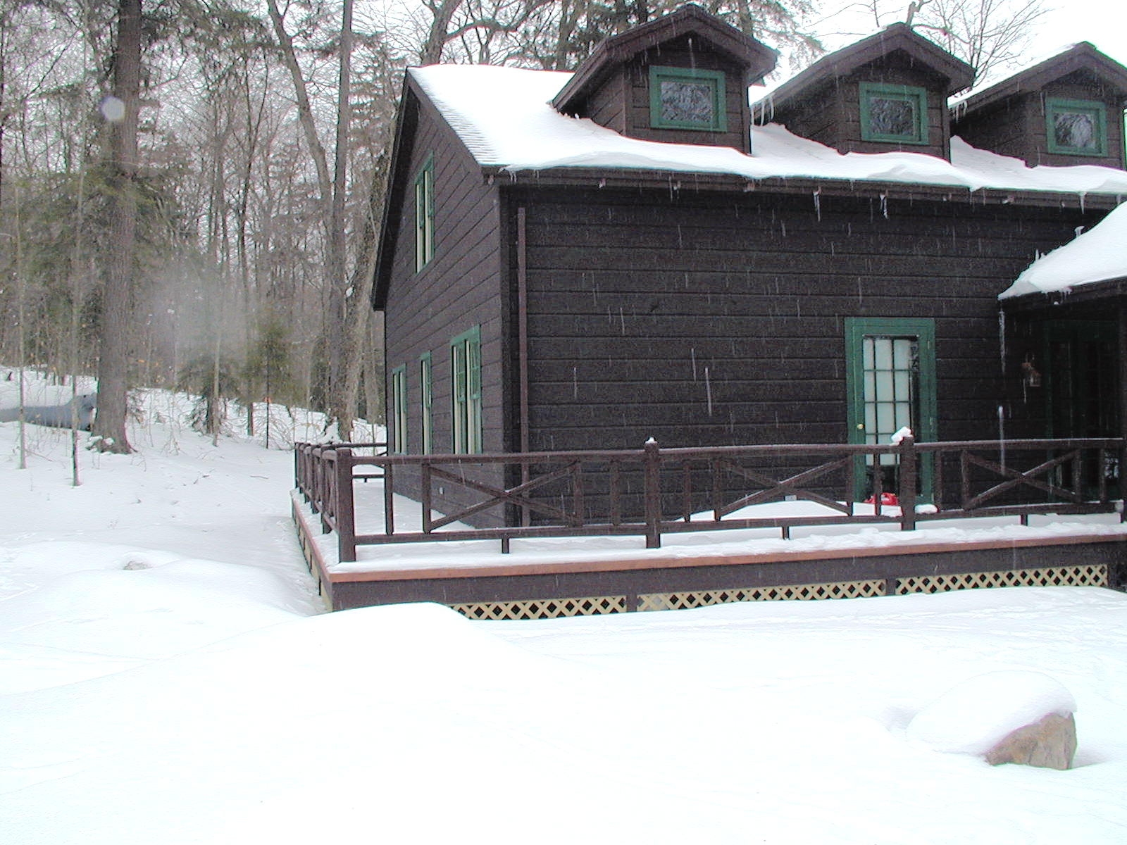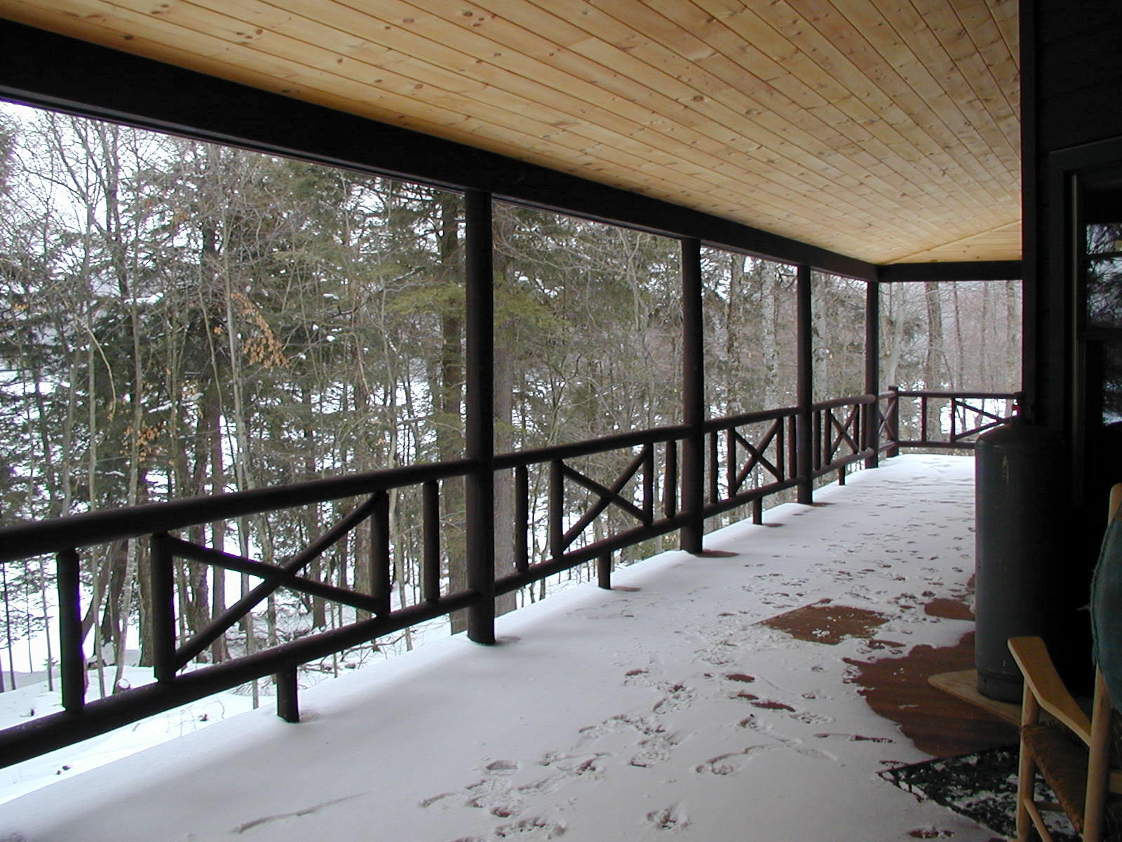 A new construction, this waterfront cabin is located on Little Moose Lake in the Adirondack League Club in upstate New York. The owners wanted a building using the Great Camp style traditional to the region, with its rustic detailing and a grand room with a cathedral ceiling and open wood trusses.