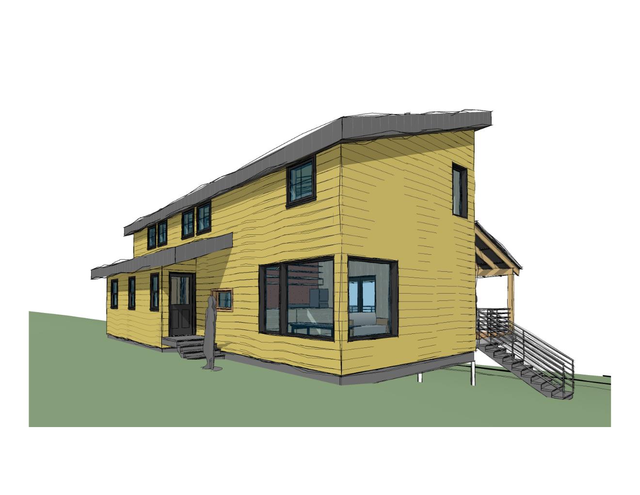 This site sits near the end of a dirt road aptly named Sunset Boulevard, which faces north-northeast on the slopes above Willowemoc Creek, one of the vital rivers of the Western Catskills. The client is a single artist looking for a permanent residence and studio. The house will be constructed of structurally insulated panels (SIPs), a load-bearing, airtight panel system which greatly reduces energy costs and construction time. The SIPs forces the building massing to be simple. The house will be oriented toward the northern views, have an open dining / kitchen / living space, a loft, and a rear deck. In the future, the client has an eye toward adding a stand-alone sauna.