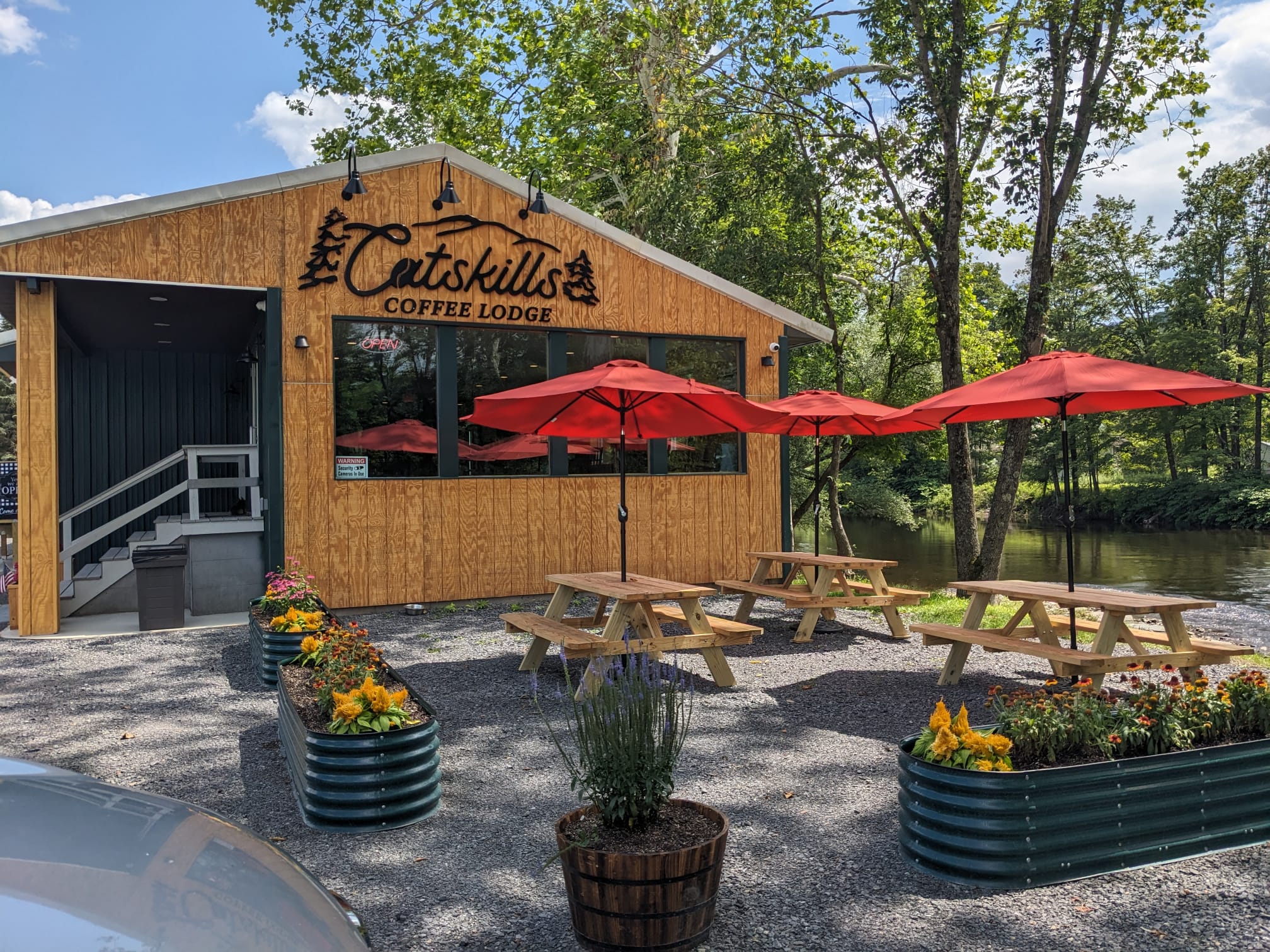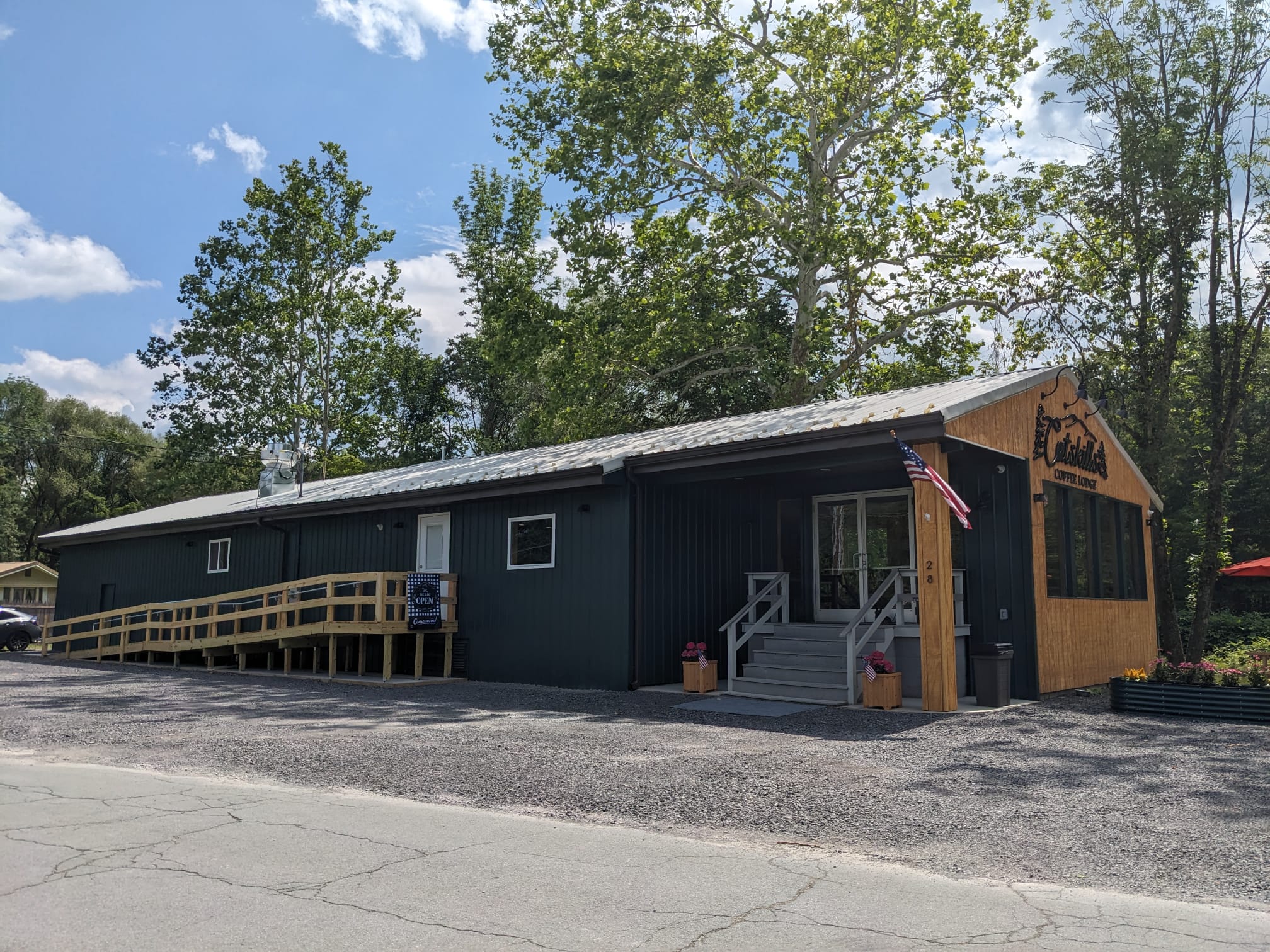 A 1,000 SF auto body shop located on the edge of downtown Roscoe on the bank of Willowemoc Creek was converted into a coffee shop by a family of Culinary Institute-trained bakers and contractors. Full gut renovation included flood mitigation measures, ADA accessibility features, HVAC, plumbing, kitchen, open seating for 30, and finishes. A tasteful addition to the community is expanding the attraction of Roscoe to travelers.