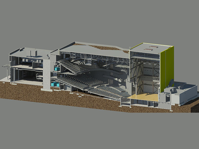 H3 was hired as the design architect and carried the design vision through the DD & CD phase while constantly coordinating complex theatrical details with a large team of acousticians, seating designers, lighting consultants, structural engineers, code consultants, construction managers, and the architect of record. Design team included Arup, George Sexton Associates, Rosser International, and Skanska. BIM modeling in Revit.